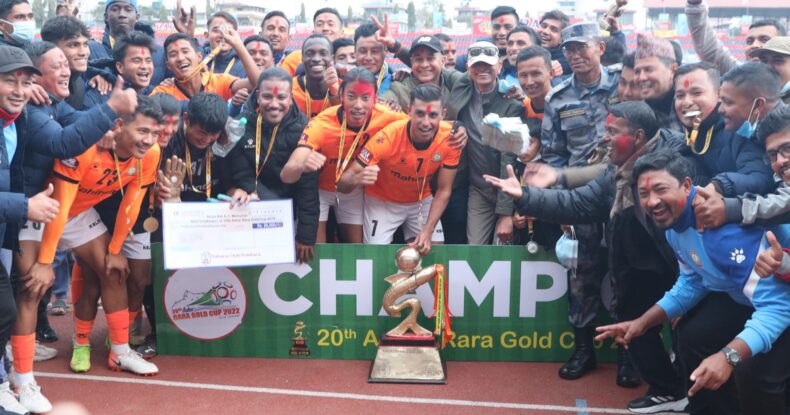 आफ्नै होमग्राउण्ड पोखरा रंगशालामा मनाङ र्मस्याङदी क्लवलाई पराजित गर्दै विभागिय टिम सशस्त्र प्रहरीको एपिएफ क्लव आहारारा गोल्डकपको इतिहासमा उपाधि जित्ने टोलिमा नयाँ नाम थप्दै आफ्नो खेल जिवनमा नयाँ इतिहास रच्न सफल भएको छ । एपिएफ १४ वर्षपछि सो प्रतियोगीताको फाईनलमा पुगेको टोली हो ।