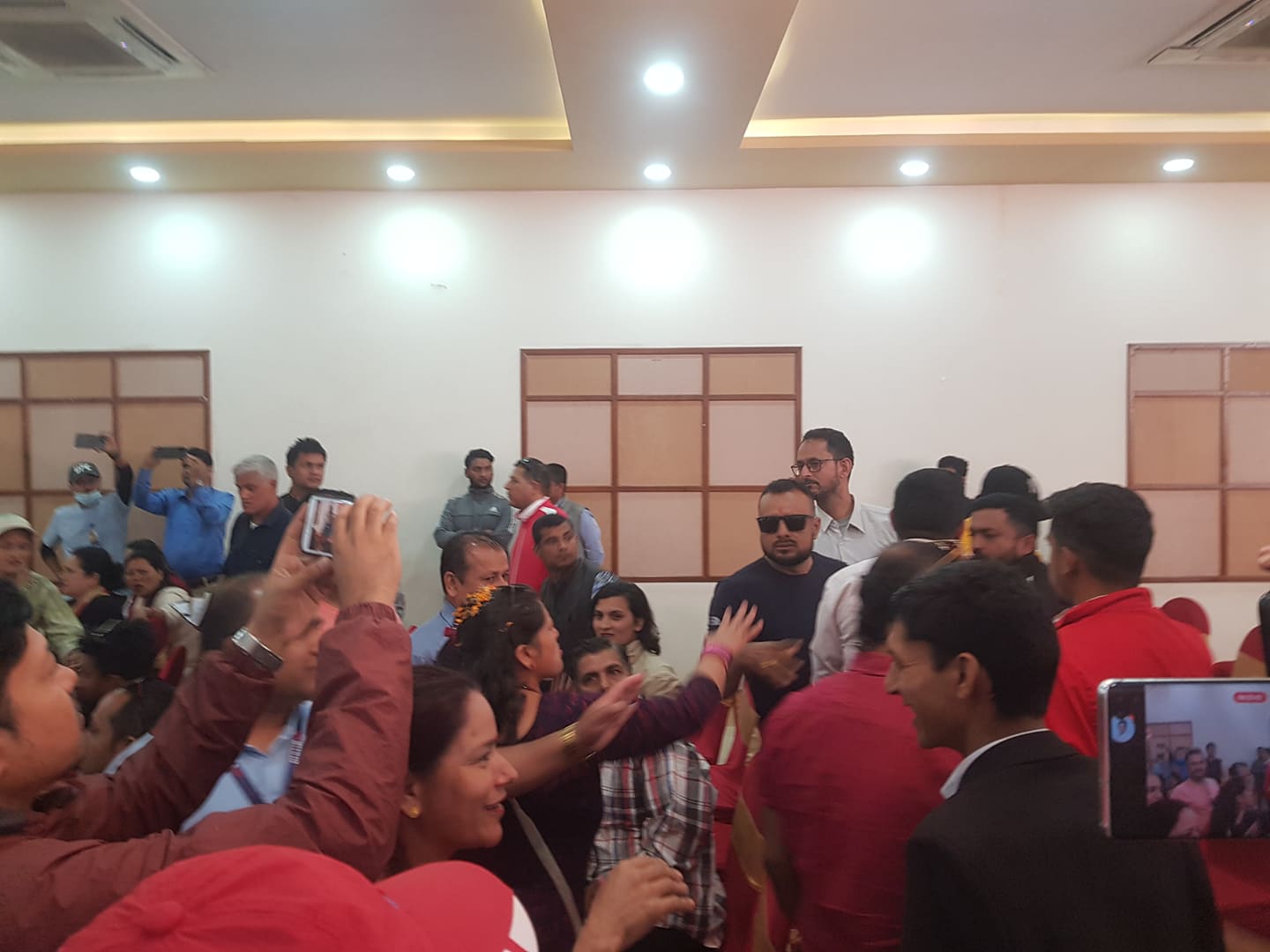 कार्यक्रममा ढिला गरि उपस्थित भएका एमाले उमेद्वार थापालाई बिचमा राख्ने भनि कुर्सी साट्न खोजेपछि कार्यक्रममा बोलिरहेका राप्रपाको तर्फबाट मेयर पदका उमेद्वार शंकर खराल आफ्ना कार्यकर्ता सहित कार्यक्रम छोडेर बाहिरिएका थिए । राष्ट्रिय टेलिभिजनको बहसमुलक कार्यक्रममा आफ्नो पार्टीलाई अपमान गरिएको खरालले प्रतिक्रिया दिए ।