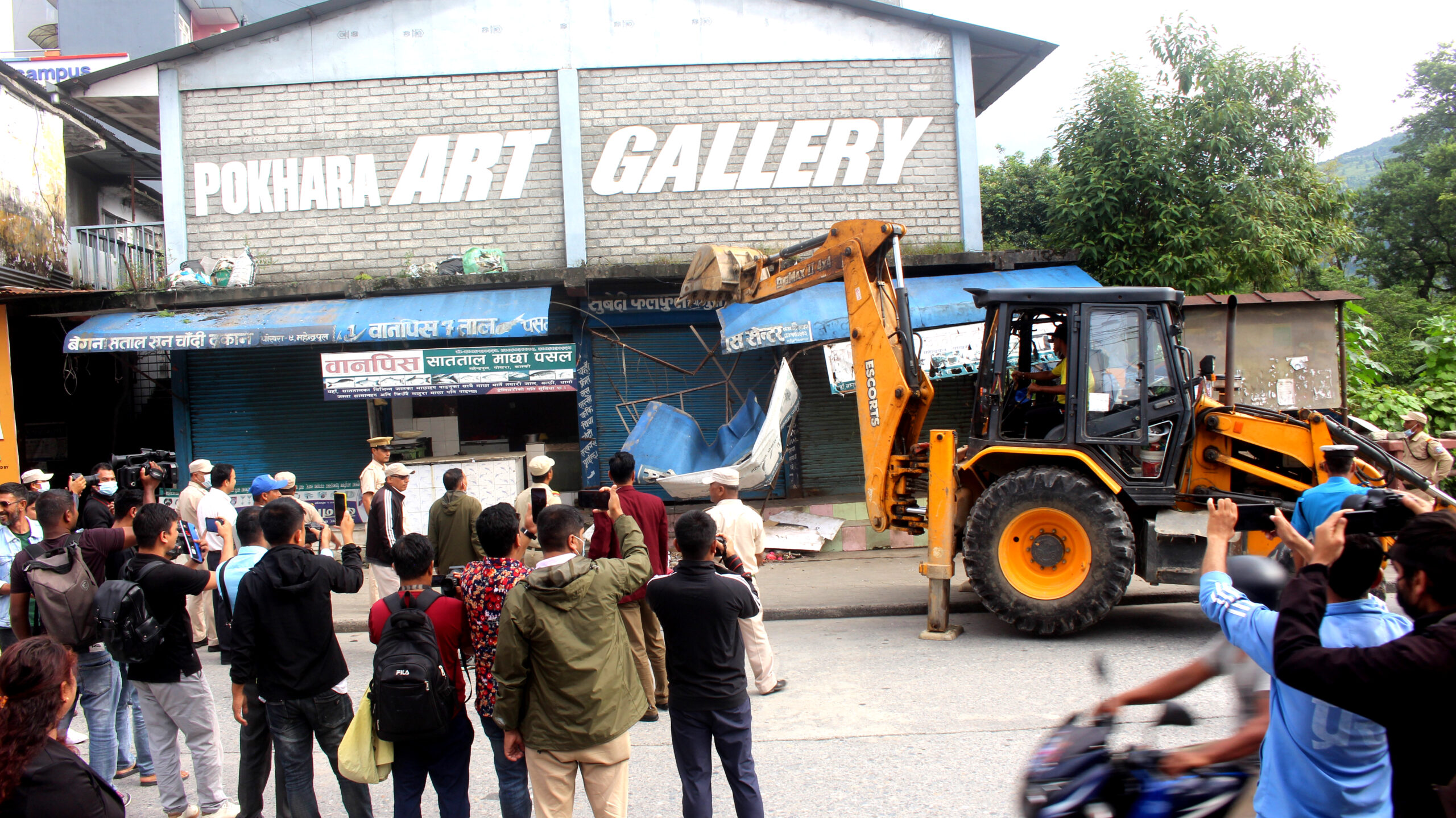 पोखरा महानगरपालिकाले वडा नं.९ महेन्द्रपुल स्थित आफ्नो स्वामित्वमा रहेको आर्ट ग्यालरी र सार्वजनिक पुस्तकालय लगायतका सटरहरूमा डोजर चलाएको छ । भवन तथा सटरहरूमा व्यवसाय सञ्चालन गरिरहेका संस्था तथा व्यवसायीहरूलाई खालि गर्नका लागि ३५ दिने सूचना दिएर महानगरपालिकाले ३६ औँ दिनमा डोजर चलाएको हो ।