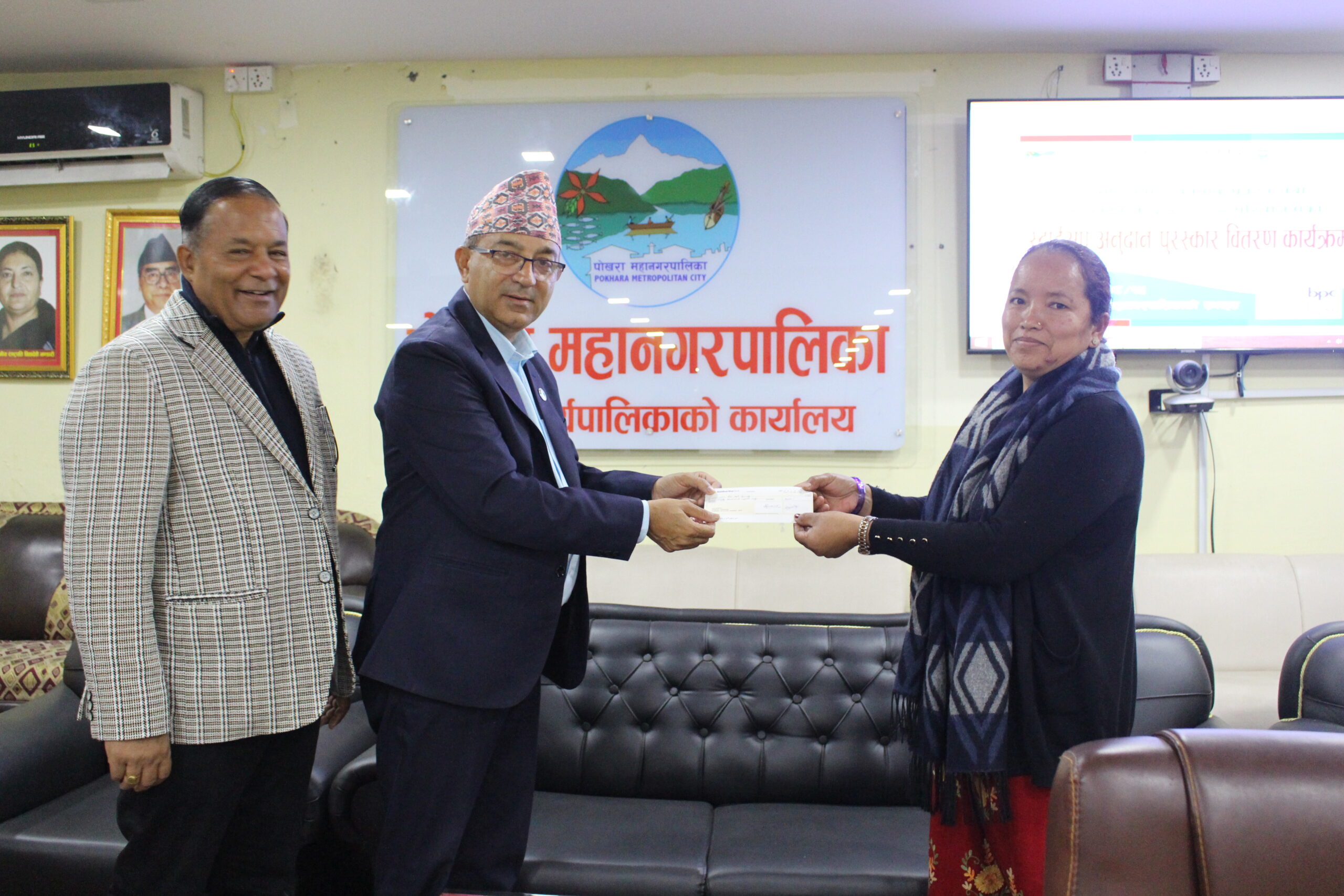 सुन्ती पुर्जा (हस्तकला), सरस्वती अधिकारी थापा (गँड्यौला पालन, कौसी खेती र फोहोर मैला व्यवस्थापन), चुत्रल कृषि समूह (कृषि उत्पादन), ग्रिन रोड वेस्ट म्यानेजमेन्ट (प्लास्टिक व्यवस्थापन), एक कल होम सोलुसन (विभिन्न सेवाका लागि प्राविधिकहरू उपलब्ध), सुवास परियार (वातावरणमैत्री झोला प्रवर्द्धन), रेखा कुमारी थापा (गँड्यौला मल प्याकेजिङ), बाबुराम बस्ताकोटी (आर्ट एन्ड ह्याण्डी क्राफ्ट), प्रेम बहादुर वि.क (मेटल उद्योग), महिला सीप विकास संस्था (हस्तकला उत्पादन), पोखरा तारा मण्डल एन्ड विज्ञान केन्द्र (सिकाई प्रवर्द्धन) र जमुना सुनार (हस्तकला) लाई नगद रु.५०÷५० हजारका दरले अनुदान उपलब्ध गराइएको हो ।