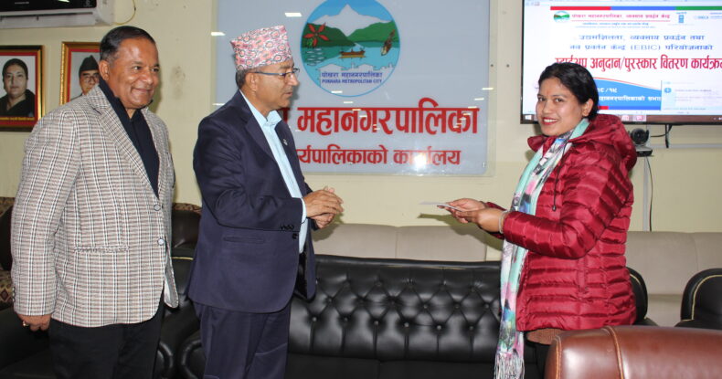 पोखरा महानगरपालिका अन्तरगत व्यवसाय प्रवर्द्धन केन्द्र (बिपिसी) द्वारा प्रकाशित सूचनाको आधारमा सूचीकृत भई छनौटमा परेका २४ वटा व्यक्ति तथा फर्महरूलाई अनुदान उपलब्ध गराइएको हो ।