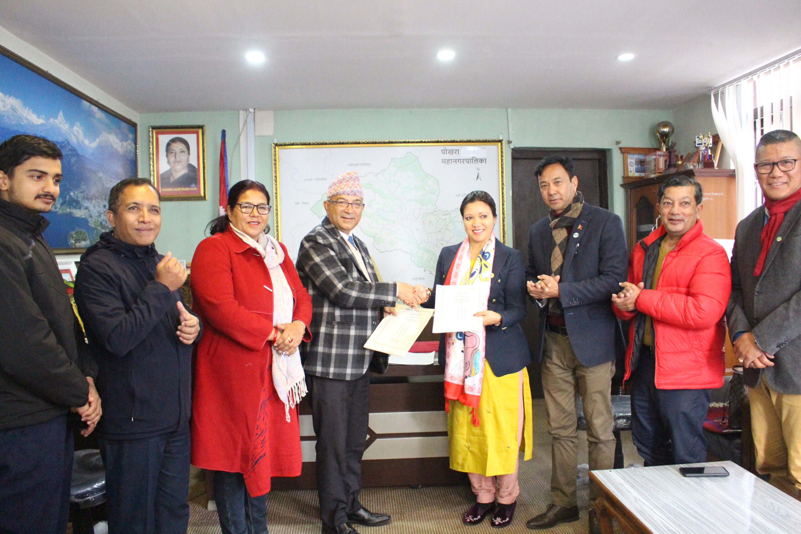 पोखरा महानगरपालिका वडा नं.९ महेन्द्र पुलमा अत्याधुनिक सार्वजनिक शौचालय र चमेना गृह निर्माणका लागि पोखरा महानगरपालिका र गैर आवासीय नेपाली सङ्घ (एनआरएनए) बिच मङ्गलवार सम्झौता भएको छ । पोखरा महानगरपालिकाका प्रमुख धनराज आचार्यको रोहबरमा भएको सम्झौतामा महानगरपालिकाको तर्फबाट सहायक प्रमुख प्रशासकीय अधिकृत जितेन्द्रजंग केसी र एनआरएनएको तर्फबाट कार्यकारी अध्यक्ष रविना थापाले हस्ताक्षर गर्नुभएको हो ।