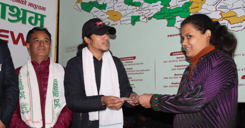 पत्रकार भीम थापाले आफूले प्राप्त गरेको पत्रकारिता पुरस्कार पोखरा १७ छोरेपाटन स्थित मानव सेवा आश्रमलाई प्रदान गरेका छन् । शनिवार कपडा व्यवसायी एसोसिएसन कास्कीले आफ्नो रजत वर्षका अवसरमा पत्रकार थापालाई व्यवसायीक पत्रकारिता पुरस्कार प्रदान गरेको थियो । पत्रकार थापाले आइतबार आश्रम मै पुगेर आफूले प्राप्त गरेको पुरस्कार नगद रु.११ हजार १ सय १० रुपैयाँ आश्रमकी कास्की जिल्ला सहसंयोजक सम्झना बर्तौलालाई हस्तान्तरण गरेका हुन् ।