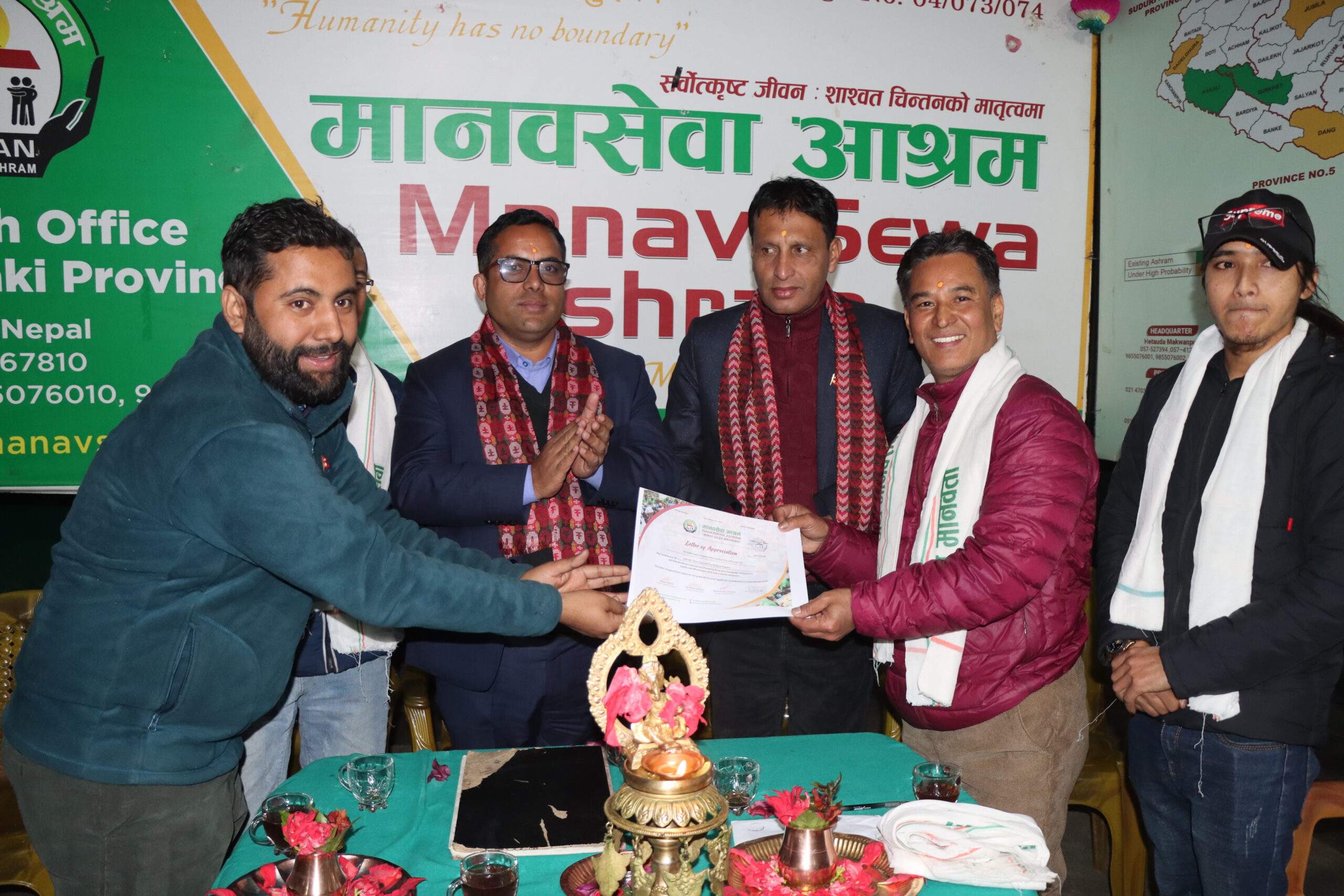 आश्रमका सञ्चालक होमनाथ मानवसेवाले मानवता प्रवर्द्धनको अभियानमा यस्तो प्रकृतिको सेवा पहिलो भएको बताए । पोखरामा बर्सेनि दर्जनौँ पत्रकारिता सम्बन्धी पुरस्कारहरू वितरण गरेको सुनिए पनि पहिलो पटक नजिकबाट आभास गर्न पाएको बताए । सुन्दर हृदयमा मानवताका सुन्दर फुलहरू फुल्ने बताउँदै उनले पत्रकार थापाको सहयोग त्यही सुन्दर आत्माको एक प्रतिकका रूपमा आफूले आभास गरेको बताए ।
