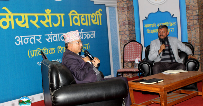 पोखरा महानगरपालिकाको शिक्षा महाशाखा र गण्डकी बहु प्राविधिक शिक्षालय पोखराको आयोजनामा मेयरसँग विद्यार्थी अन्तर संवाद कार्यक्रम गरिएको छ । प्राविधिक शिक्षाको अवस्था, आवश्यकता र अवसर लगायतमा केन्द्रित अन्तर संवादमा पोखरा महानगरपालिकाका प्रमुख धनराज आचार्य सहित प्राविधिक शिक्षा सेवा प्रदायक संस्था=संस्थान र अध्ययन गरिरहेका विद्यार्थीहरूले प्रत्यक्ष सहभागिता जनाएका छन् ।