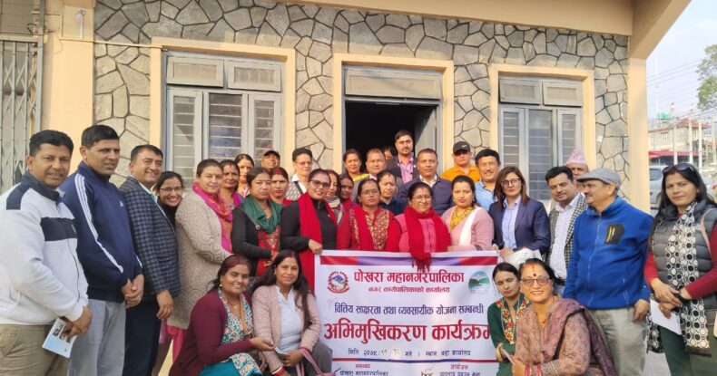 पोखरा महानगरपालिकाको आर्थिक विकास महाशाखा अन्तरगत रहेको व्यवसाय प्रवर्द्धन केन्द्रको आयोजना तथा पोखरा महानगरपालिका वडा नं.५ को समन्वयमा वित्तीय साक्षरता तथा व्यवसायीक योजना निर्माण सम्बन्धी अभिमुखीकरण कार्यक्रम सम्पन्न गरिएको छ ।