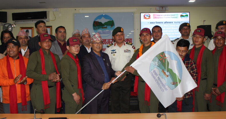 अन्नपूर्ण हिमालको सफाइका लागि जान लागेको नेपाली सेनाको टोलीलाई पोखरा महानगरपालिकाको लोगो अङ्कित झन्डा हस्तान्तरण गरिएको छ । महानगरपालिकाका प्रमुख धनराज आचार्यले सफाइ टोलीको नेतृत्व गर्नुभएका क्या.भीम बहादुर भुजेललाई महानगरपालिकाको लोगो अङ्कित झन्डा हस्तान्तरण गर्नुभएको हो ।
