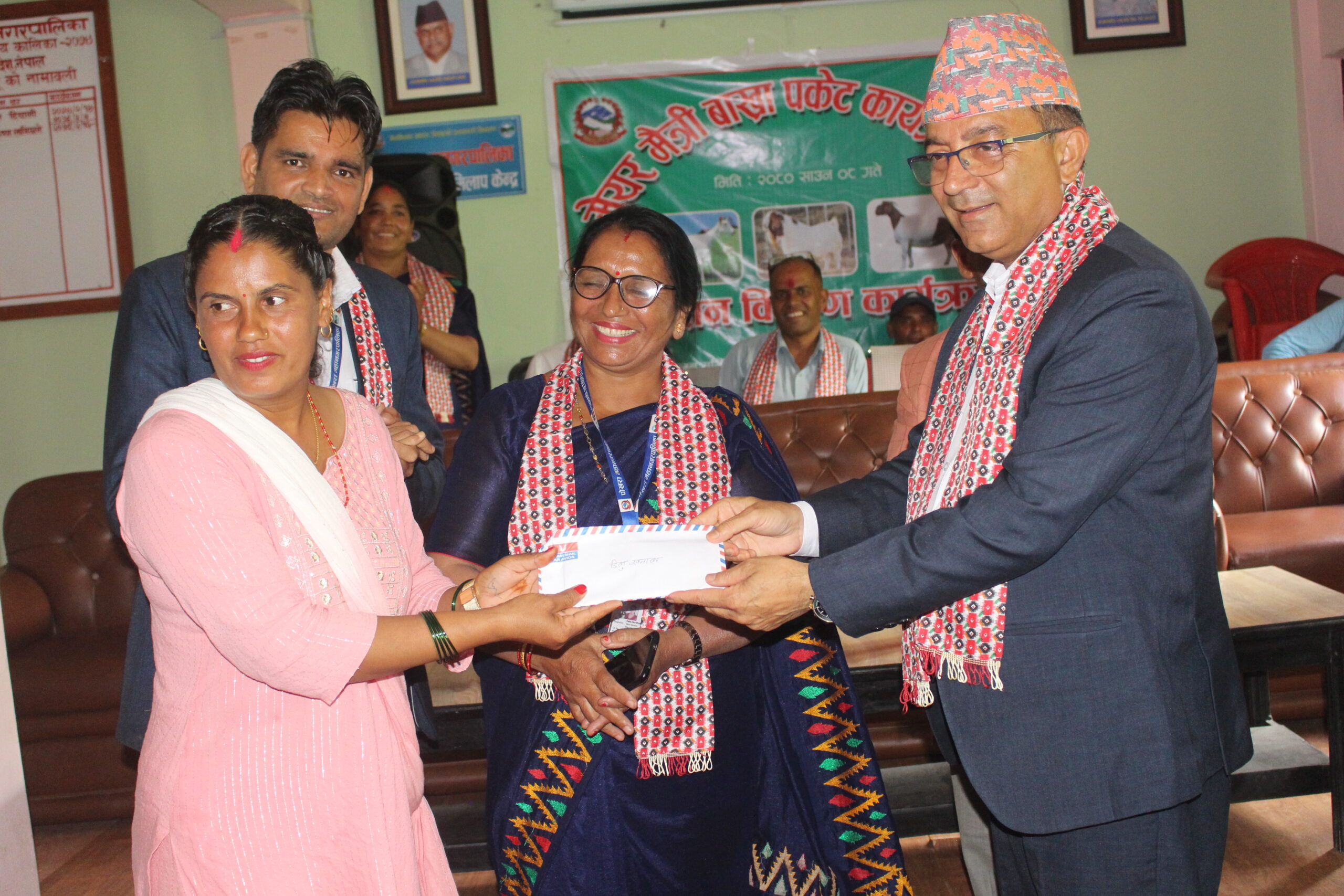 बाख्रा पालन पकेट कार्यक्रमका रूपमा विकास भइरहेका बेला महानगरपालिकाको आर्थिक विकास महाशाखाले अनुदानका लागि योग्य कृषकहरूलाई अनुदान सहायता उपलब्ध गराएको हो । यस प्रकारको अनुदानले कृषकहरूलाई हौसला मिल्ने नगरप्रमुख आचार्यले विश्वास व्यक्त गर्नुभयो । “महानगरपालिका कृषकहरूको सहायताका लागि सदैव सकारात्मक छ, प्रमुख आचार्यले भन्नुभयो, महानगरपालिकाको समृद्धिसँग कृषकहरूको समृद्धि पनि जोडिनु पर्दछ ।” आत्मसम्मानका साथ उत्पादन र उत्पादकत्व वृद्धिमा लाग्ने वातावरणको सृजना गर्न महानगरपालिका प्रतिबद्ध रहेको उहाँले बताउनुभयो ।