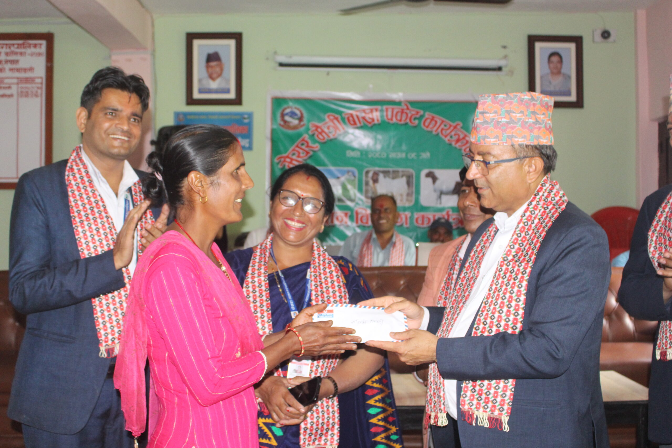 सोमबार वडा नं.१९ का २४ जना कृषकहरूलाई रु.६ लाख २० हजार, वडा नं.२० का ३२ जना कृषकहरूलाई रु.७ लाख २० हजार, वडा नं.२१ का ४३ जनालाई रु.१० लाख, वडा नं.२४ का ३७ जनालाई रु.८ लाख २० हजार, वडा नं.२५ का २३ जनालाई रु.४ लाख ८० हजार र वडा नं.२८ का ३२ जनालाई ७ लाख ६० हजार गरी १९१ जना कृषकहरूलाई रु.४४ लाख २० हजार नगद अनुदान प्रदान नगरिएको हो ।