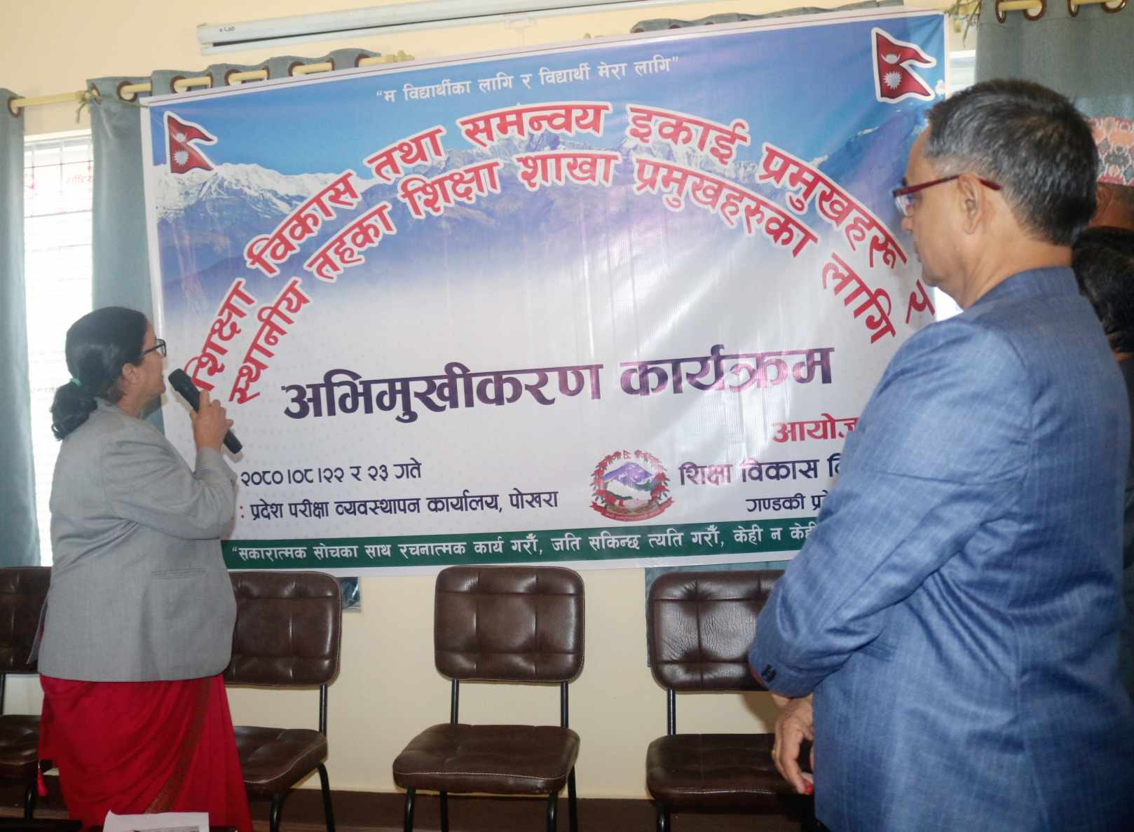 गण्डकी प्रदेशको सामाजिक विकास तथा स्वास्थ्य मन्त्री सुशीला सिम्खडाले मूलुकमा संघियता कार्यान्वयन भइसक्दा पनि शिक्षा क्षेत्रमा भने संघियता अझै नआएको बताएकी छन् । गण्डकी प्रदेश शिक्षा निर्देशनालयद्धारा आयोजित ‘म विद्यार्थी र विद्यार्थी मेरा लागि’ भन्ने मूल नाराका साथ प्रदेश भित्रका शिक्षा विकास तथा समन्वय इकाई प्रमुख र स्थानीय तहका शिक्षा शाखा प्रमुखका लागि अभिमुखिकरण कार्यक्रमको उद्घाट्न गर्दै मन्त्री सिम्खडाले तीन तहकै सरकारलाई मिलाएर नयाँ शिक्षा नीति कार्यान्वयनमा जोड दिनुपर्ने बताएकी हुन् । १२ कक्षा पास गरेपछि स्नातक तह पढ्ने विद्यार्थीको संख्यामा गिरावट आएको र पासवर्ड बोकेर एयरपोर्ट धाउने दक्ष युवालाई रोक्ने शिक्षा नीति नै अहिलेको आवश्यकता रहेको उनले बताइन् । ‘परम्परातगत शैलीमा नै चल्ने हो भने अवको केही वर्षभित्र जे पनि हुन सक्छ’ उनले भनिन, ‘संघिय शिक्षा ऐन नआउदा पनि प्रदेशले बाटो पाएको छैन् । शिक्षा सम्बन्धि ६ वटा विधेयक ड्राफ्ट छन् । तर, संघिय शिक्षा ऐन नआउदा हामीले पनि शिक्षा ऐन ल्याउन पाएनौ ।’ प्राविधिक शिक्षामा जोड दिनुपर्ने उनको धारण थियो । ‘अहिलेको शिक्षा कति वैज्ञानिक छ यसतर्फ बहस चलाउनुपर्ने समय भयो’ उनले थपिन् । प्रदेश शिक्षा विकास निर्देशक अम्बिकाप्रसाद आचार्यले प्रदेश शिक्षा नीति, २०७८ र राष्ट्रिय शिक्षा नीति, २०७६अनुसार प्रदेश सरकारले काम गर्दै आएको बताए । अन्य प्रदेशको तुलनामा गण्डकी प्रदेश शिक्षा क्षेत्रमा अगाडि रहेको दावी गर्दै निर्देशक आचार्यले गणित, विज्ञान र अंग्रेजीका विषयगत शिक्षकको संख्या कमी रहेको बताए । सामाजिक विकास तथा स्वास्थ्य मन्त्रालयका सचिव प्रकाश पौडेलले गुणस्तरीय शिक्षाको अभावकै कारण उच्च शिक्षामा अध्ययनरत विद्यार्थीको संख्या घट्दै गएको बताए । सीटीईभीटी गण्डकी प्रदेशका प्रमुख दामोदर देवकोटाले पनि प्राविधिक शिक्षामा जोड दिए ।