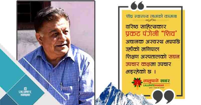 वरिष्ठ साहित्यकार प्रकट पङ्गेनी ‘शिव’ अचानक अस्वस्थ भएपछि अस्पताल भर्ना गरिएको छ । उनको मणिपाल शिक्षण अस्पतालको सघन उपचार कक्षमा उपचार भइरहेको पोखरा महानगरपालिकाका प्रमुख धनराज आचार्यले जनाएका छन् ।